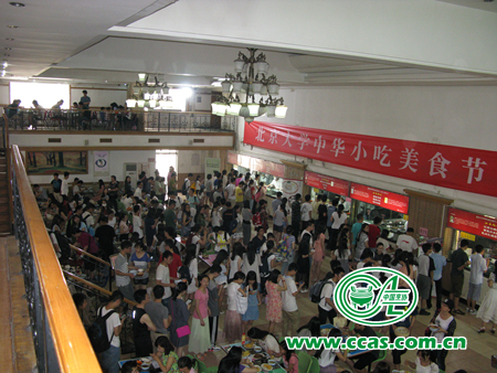 美食節使師傅們忙得不可開交,累得眼睛通紅,熱得滿頭大汗,但精神上的興奮足以彌補身體上的疲憊,師生的肯定是令他們最驕傲最自豪的事。看看這個外國人、看看這些吃著美食回顧往事的老朋友、看看端著一份小吃尋找下一份的學生、看看發揮團結作戰能力分別買多種風味小吃的學生、再看看小吃銷售一空后還不肯離去的學生……這就是主理師傅這次活動最大的成績!